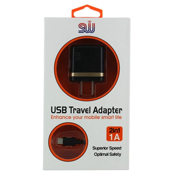 H03 1 Amp 2 In 1 Travel Charger for Micro USB - Black