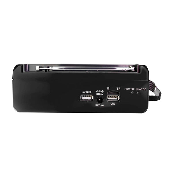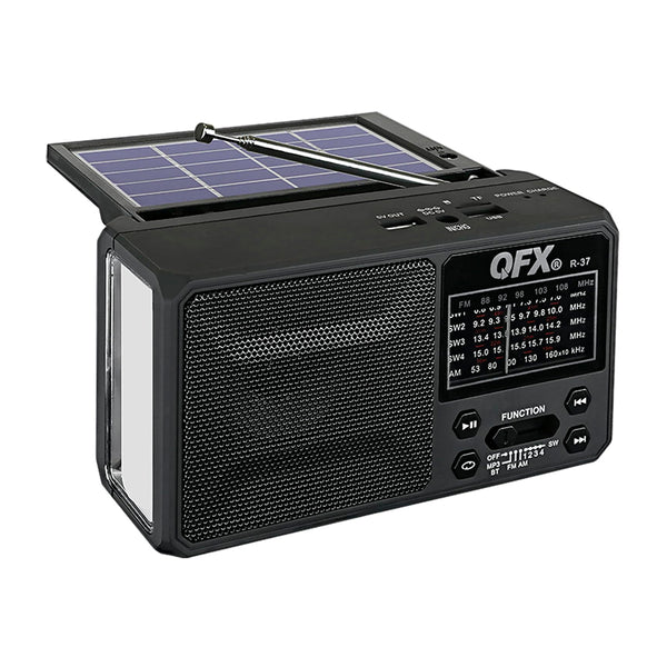 Easy transportation: The QFX R-37 6-Band (AM, FM, SW1 - SW4) Bluetooth LED Flashlight Solar Radio is a convenient gadget for those with an adventurous lifestyle. Slip the QFX R-37-BL Solar Flashlight Radio into your back pocket or use the...View more